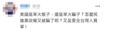 也有人质疑,“延迟交货没有罚则吗?”“美国是军火贩子,还是军火骗子?怎么民进党当局又被骗了呢?又是要全台湾人买单!”↓