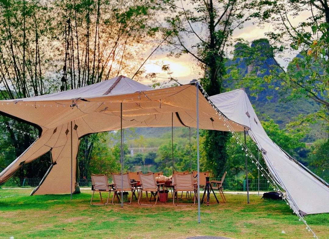 走进营地,满眼是绿。营地里还有个性独特的集装箱、古朴自然的小木屋、浪漫梦幻的泡泡房……一边吃着美食,一边观赏风光秀丽的左江山水,是再惬意不过的事了~