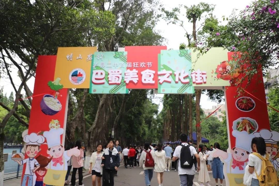 美食街:巴蜀味道,人间烟火 巴蜀味道,美食天堂;各种厨艺,竞相上场家长助阵,同学助威,好一派人间烟火气羊肉串、麻辣烫,卤鸡爪配奶茶,再来一份水果加甜点,这四方食事,人间至味,尽在泸县二中林荫大道“巴蜀美食街”。
