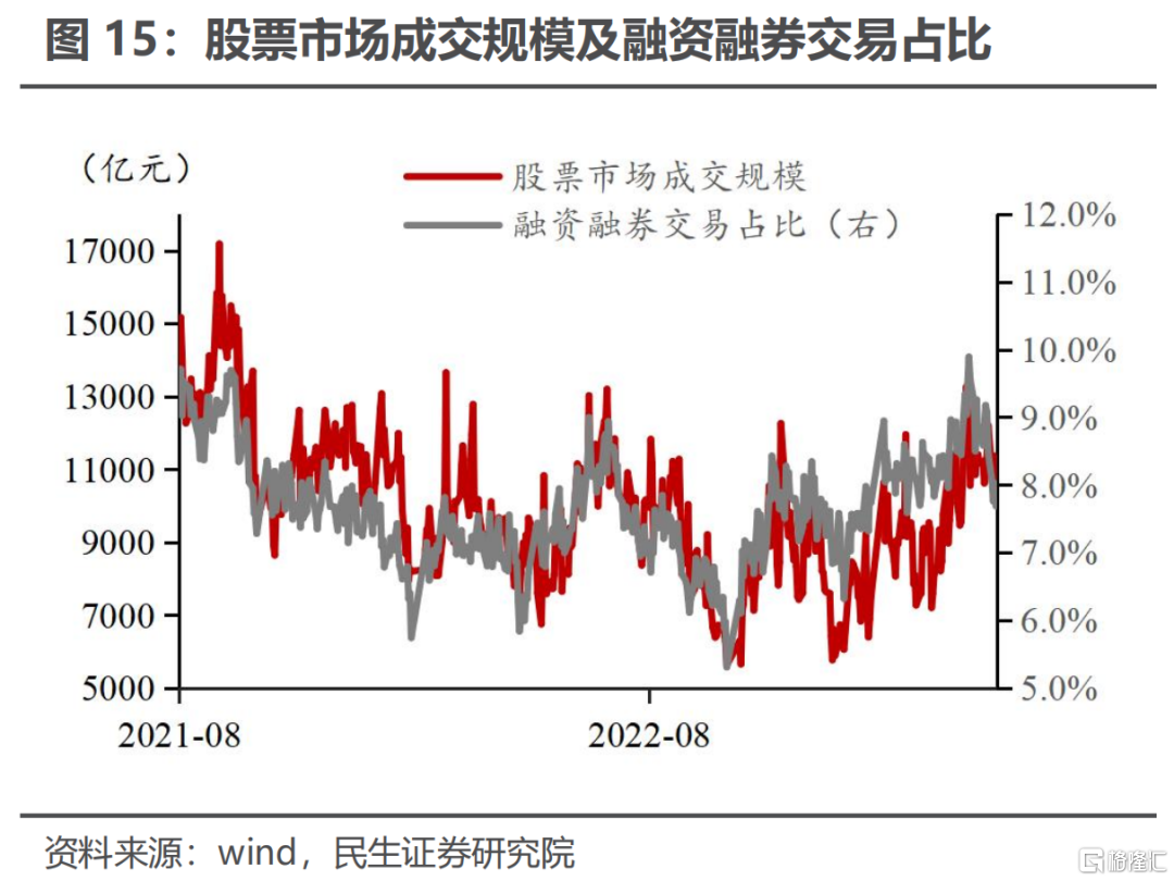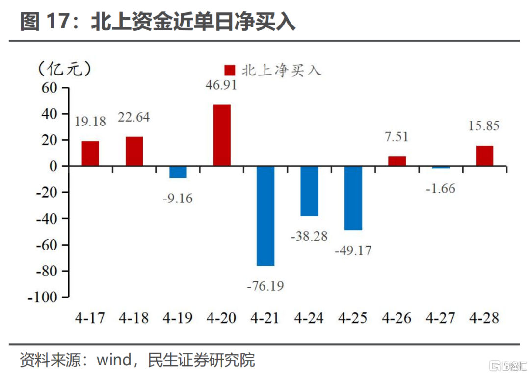 二、资金流动及机构行为本周A股市场日均成交金额为1.1万亿元,融资融券交易占比约8.0%,活跃度小幅下滑根据wind统计,本周新发基金金额(股票+混合型)为25亿元,相较于上周51亿元小幅回落北向资金累计净卖出量30.72亿元,相比上周流出增加。