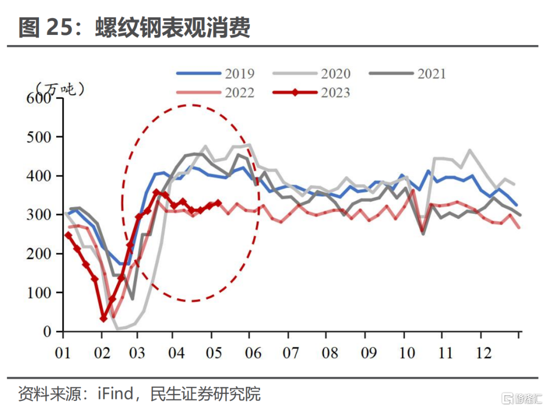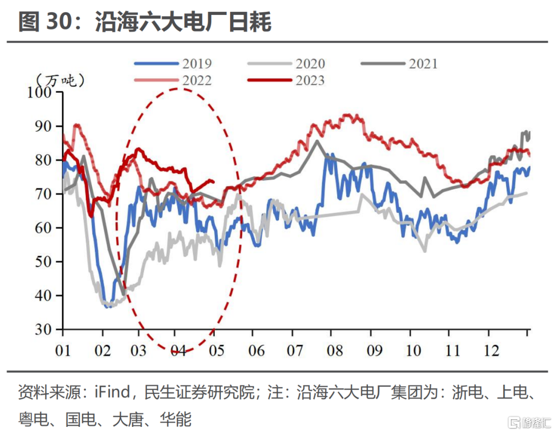 三、主要的高频经济指标建筑业施工偏弱,全国气温回暖带动日耗走低螺纹钢表观消费329.3万吨,环比上周增加7.8万吨,与2022年同期持平全国水泥价格指数跌至135.7,与上周相比继续走低,大幅弱往年同期水平;全国气温继续升高,六大电厂日耗煤量较上周继续上升,强于历史同期。