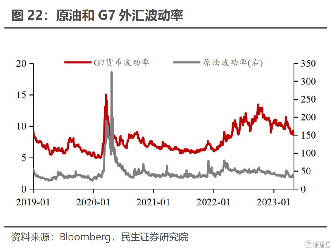 票据转贴利率周内先降后升,半年期国股票据转贴利率本周降至1.85%,比上周下行12BP美债、原油、美股、G7货币波动率全线走高离岸美元流动性边际有所恶化美元兑日元、欧元兑美元货币互换基差小幅走阔