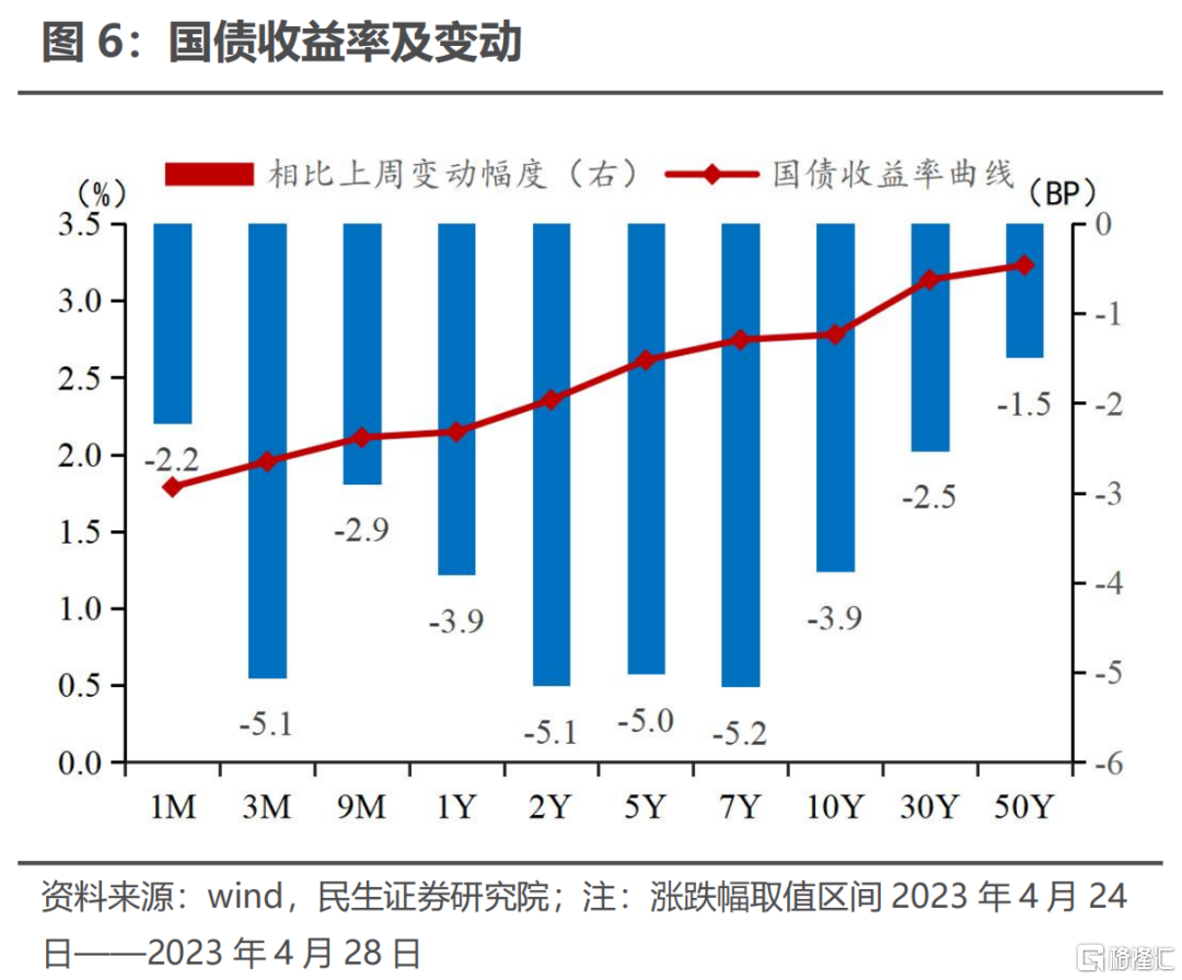 大部分板块有所上涨,其中传媒、非银、综合金融、食品饮料、建筑等行业涨幅较大;通信、电子、计算机、基础化工、有色金属等跌幅靠前债券市场情绪较好,国债收益率下行,信用债涨跌不一1年期国债利率下行3.91BP,5年期国债利率下行5.02BP,10年期国债利率下行3.37 BP;国开1年期下行3.37BP,5年期下行5.60BP,10年期下行5.85BP。