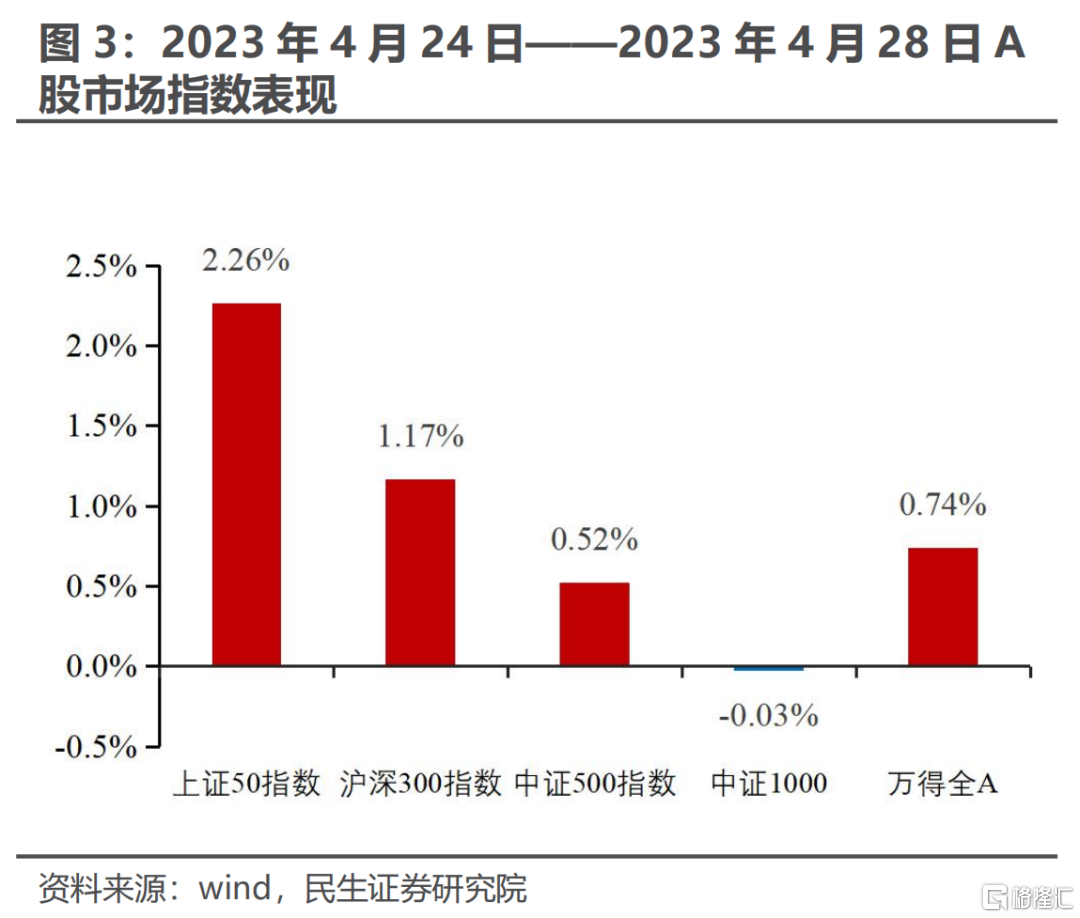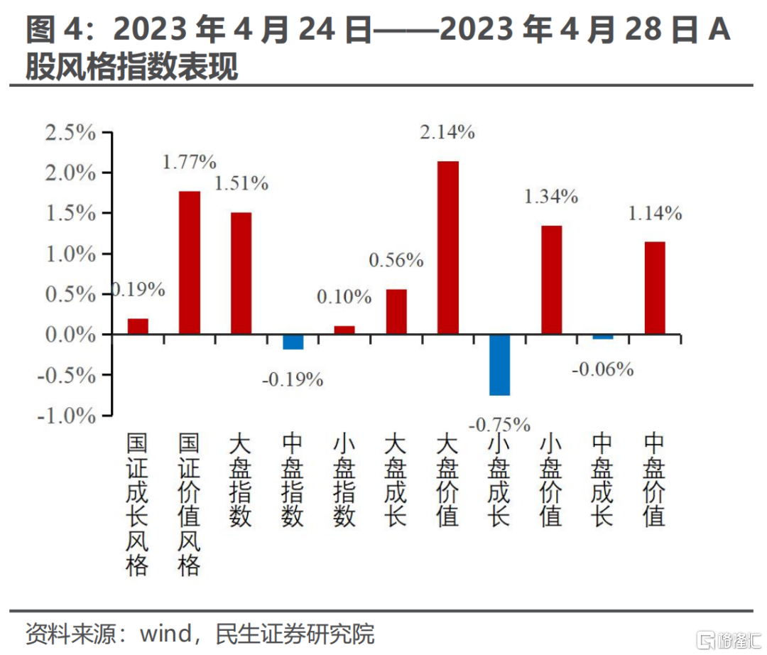 本周国内股市多数上涨,价值跑赢成长,上证50指数、沪深300指数好于中证500指数、中证1000指数上证指数上涨1.46%,深指数证上涨0.19%,创业板指数上涨1.02%,科创50指数下跌0.78%国证价值风格指数上涨1.77%,成长风格指数上涨0.19%;大盘指数上涨1.51%,中盘指数下跌0.19%,小盘指数上涨0.10%。