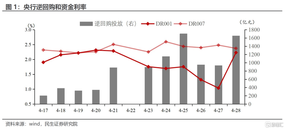 另外,周五(5.5)美国4月非农就业数据出炉正文一、大类资产价格表现本周央行公开市场操作逆回购规模共6380亿元,加上上周日投放的890亿,实际投放规模达7270亿元,货币市场流动性宽松资金跨月不紧,DR001一度跌破1.0%,DR007小幅走高至2.37%。