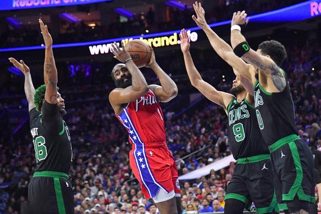 在防守端,恩比德更是镇守住了内线,直接送给塔图姆一记大帽反观哈登,他与恩比德之间的配合仍然有些不见功效,而且哈登在凯尔特人高效的防守体系下,首节只有3次出手