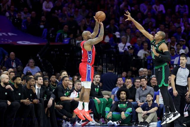 恩比德一人在篮下的强攻,虽然帮助费城找到了进攻感觉,但是他们的防守依然漏洞百出,在第三节结束时,费城已经落后凯尔特人11分