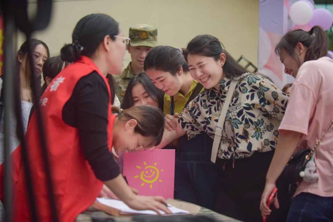 签名、抽取号码、献花……初入军营女青年们就感受到了来自军营的热情