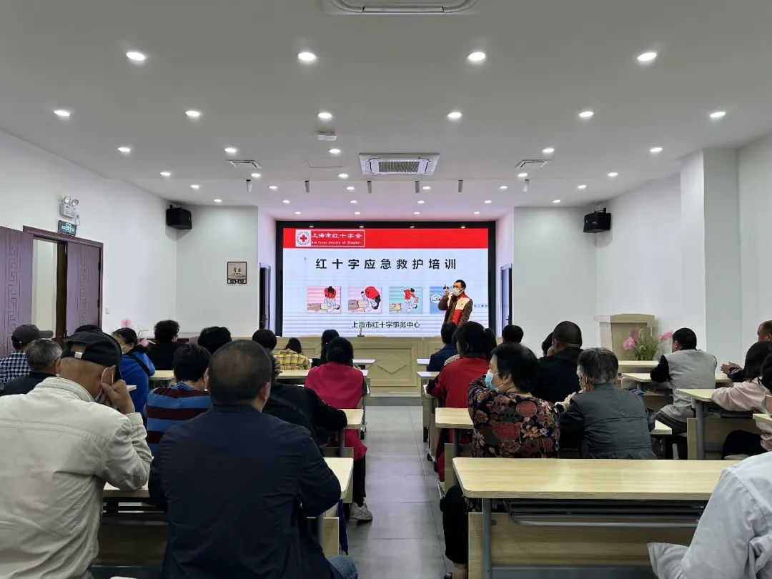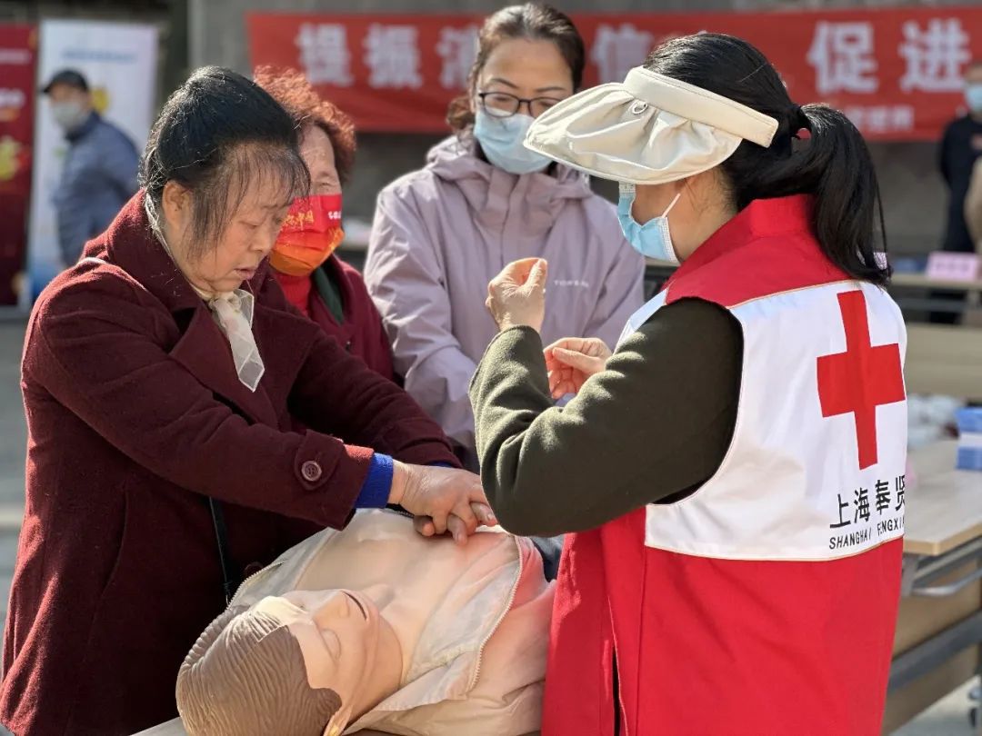 仪式结束后,青村镇红十字应急救护培训师资、钱桥卫生院全科医生付飞为居民们开展了一场普及培训。