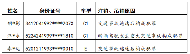 希望广大交通参与者引以为戒,提升守法意识,营造良好的道路交通环境 2023年第一季度,以下3名违法驾驶人被终生禁驾。