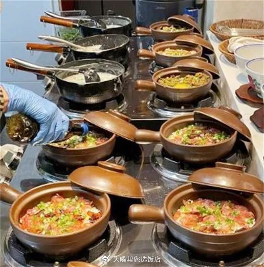 广式砂锅煲仔饭小店,既有煲仔饭又有粥品,都是现做。煲仔饭的口味有:腊味、窝蛋牛肉、鱼片、海蛎子、咖喱牛肉、豆豉排骨、肥肠等等。