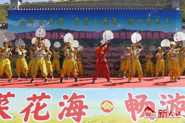 新天水讯【记者 张彬霞 李旺旺】4月30日,在武山县龙台镇马年村,“品冷水鱼宴 赏高山花海 游十有武山”武山县西北最美高山梯田油菜花海观光系列活动启动。