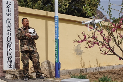 雾灵山自然保护区管理处,马志红启动无人机查看林场情况。