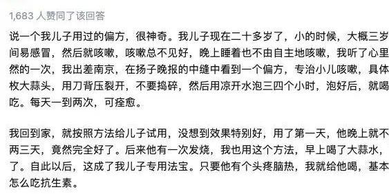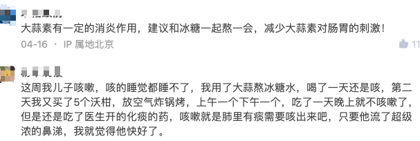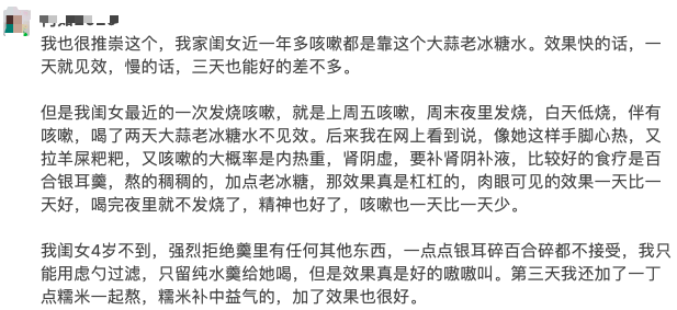 网友:喝大蒜老冰糖水,效果好得嗷嗷叫