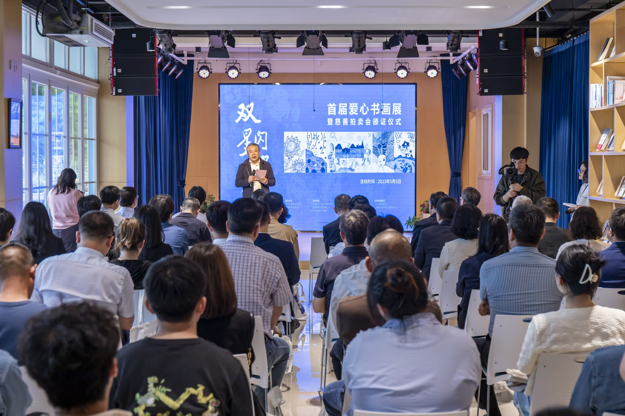 5月5日,闵行区政协在“慧音蓝屋”举办“双星闪耀·书画传情”首届爱心书画展暨慈善拍卖活动颁证仪式 “双星闪耀·书画传情”书画展于4月2日在朵云轩艺术中心开展,展览特别邀请了全国知名书法家、普通儿童,联合孤独症儿童及人士共同创作,展出了百幅孤独症人士画作、百幅沪上知名书法家作品和118幅普通儿童的绘画作品。