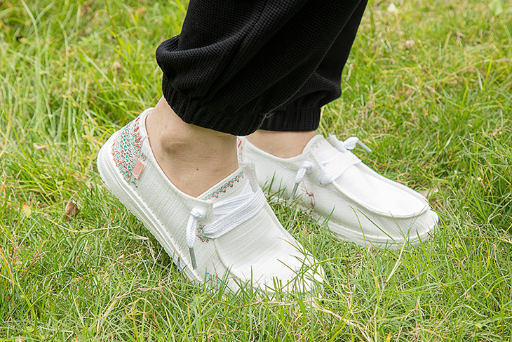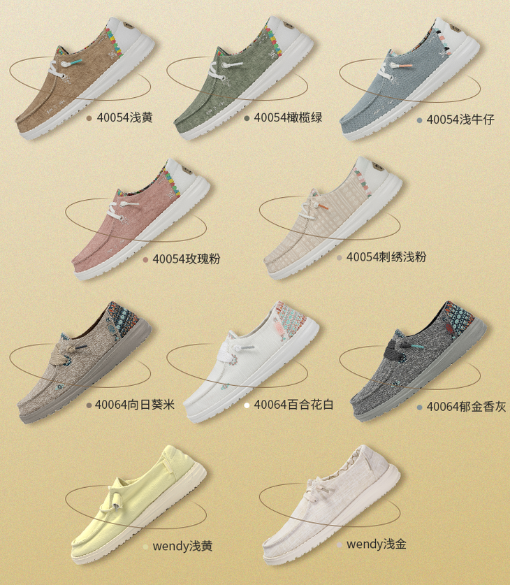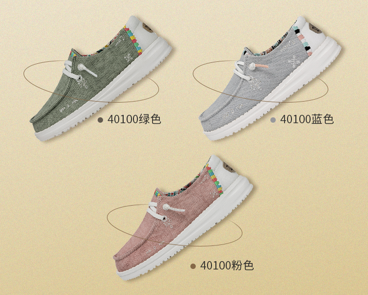 /// 款式1:40054系列/// 整体很波西米亚风,看到它,好像就看到了沙滩、阳光与海岸,扑面而来的春夏感 /// 款式2:40064系列/// 棉麻风鞋面+田园元素图案装饰,搭配宽鞋带,尤其悠闲自在。