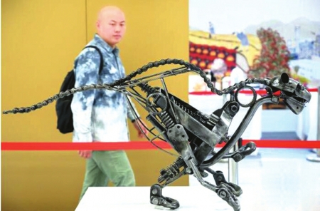 工业风十足的《十二生肖》系列钢铁艺术品引人关注韦亮摄□高雨晴 “工业的发展,淘汰产生了大量的‘金属废物’,虽然它们已失去原有使用功能,成为很多人眼中的‘废品’,但它们在我眼里,都是非常精美的‘艺术品’,每一个零件都体现了工业发展的历史……”一颗螺丝钉、一条自行车链条、一台废旧的汽车发动机……这些在他人看来毫无用途的“金属废物”,在山西手艺人李智眼中却是不可多得的“宝贝”。
