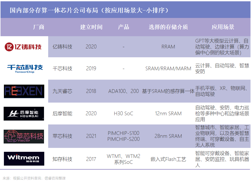 (图源:偲睿洞察《AI大算力芯片行业报告-百舸争流,创新者先》)据偲睿洞察不完全统计,自2019年起,新增的AI芯片厂商,多数在布局存算一体:在2019-2021年新增的AI芯片厂商有20家,在这之中,有10家选择存算一体路线。
