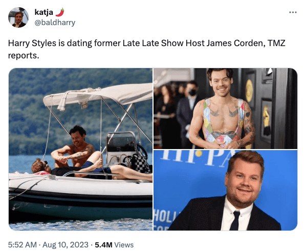 原标题:太离谱了:他和他?!今天一早,国外社交媒体上流传起一段绝对称得上是离谱的恋情传闻—— 两位主角分别是 曾经英国最火男团One Direction“颜值担当”哈卷Harry Styles和有“英国张大大”之称的主持人詹胖James Corde