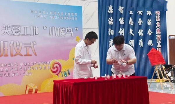 团马鞍山市委书记万颖、中铁上海局团委书记方煜联合为巢马铁路5标工地“小候鸟”暑托班揭牌开班仪式上,“小候鸟”们热情高涨,纷纷上台献艺,赢得阵阵掌声巢马铁路5标项目为“小候鸟”们送上了书包、文具、图书等礼品,项目安质部为“小候鸟”们讲授暑托班安全教育“第一课”,围绕普及防溺水、防火灾等安全知识,讲解了救生圈、灭火器的使用方法,增强了孩子们的溺水自救能力和消防安全意识。