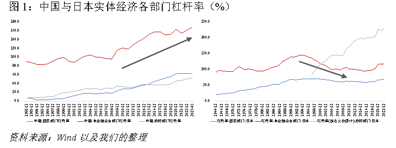 2023年一季度,居民部门、非金融企业部门杠杆率分别为63.3%、167%,均比2019年末的56.1%、151.9%有所上升相比之下,1990-2006年日本居民部门与非金融部门“去杠杆”明显,其中非金融企业部门杠杆率下降了近。