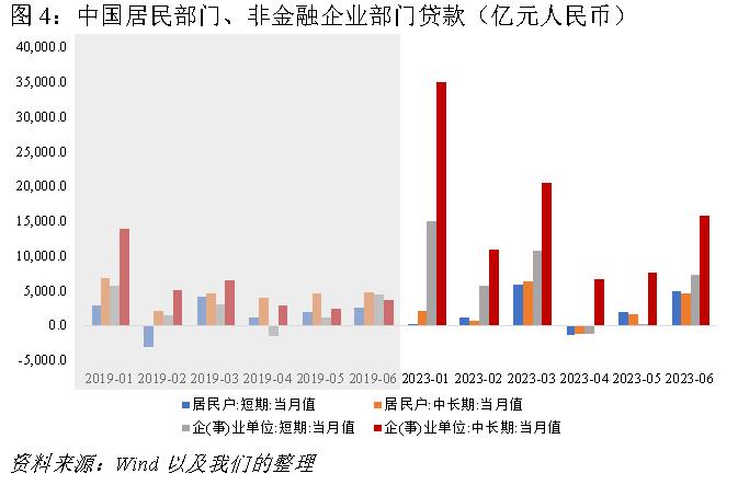 4914亿元、4630亿元,企业短期贷款、中长期贷款分别新增7449亿元、1.59万亿元。企业与居民短期、中长期贷款都持续改善,特别是企业中长期贷款并未出现收缩,与资产负债表衰退的前期表象并不相符。