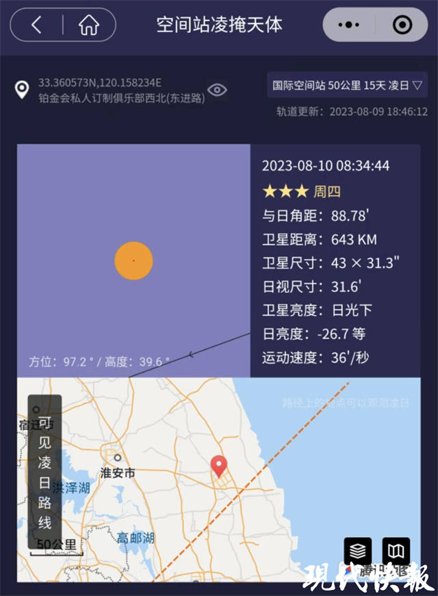 原标题:1秒!盐城天文爱好者拍到国际空间站凌日现代快报讯(记者 王菲)“一秒钟,一眨眼就过去了!”8月10日上午8点34分,盐城天文爱好者陈自坚在大丰区刘庄镇附近拍到了国际空间站凌日,激动不已。