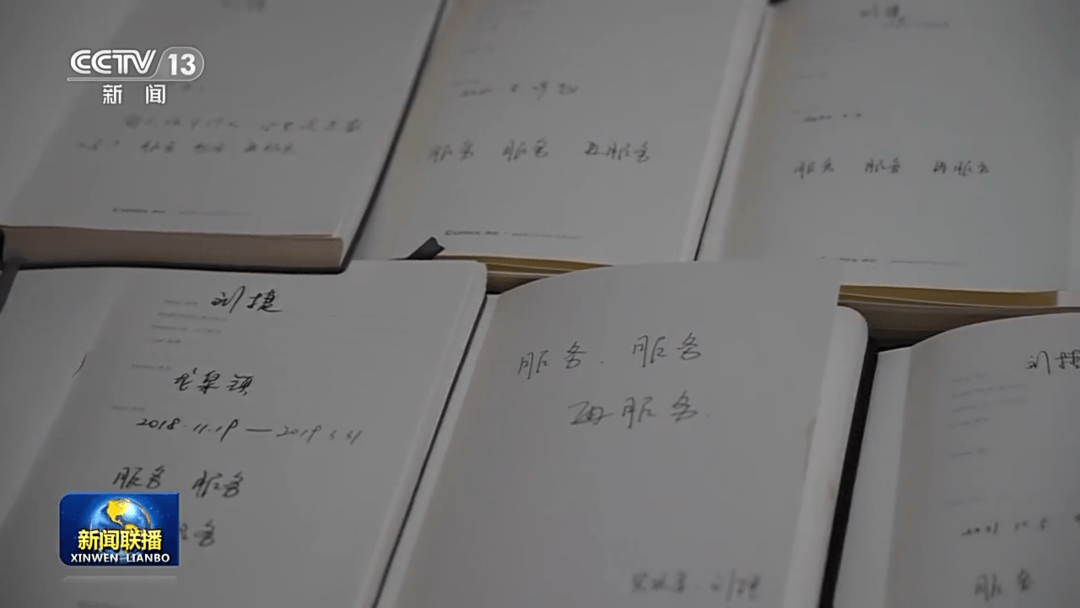 在家中,记者看到了他多年来的工作笔记,在一本本笔记本的扉页上都写着“服务服务再服务”。