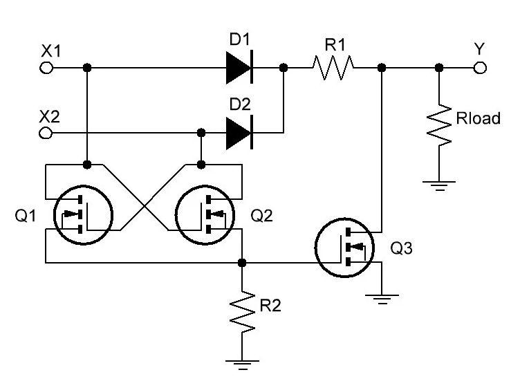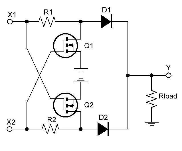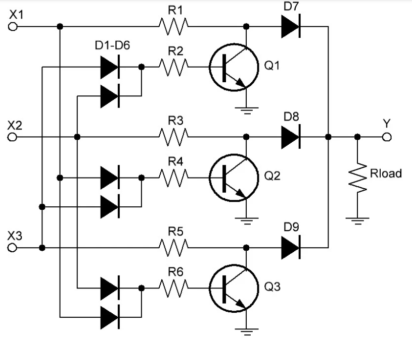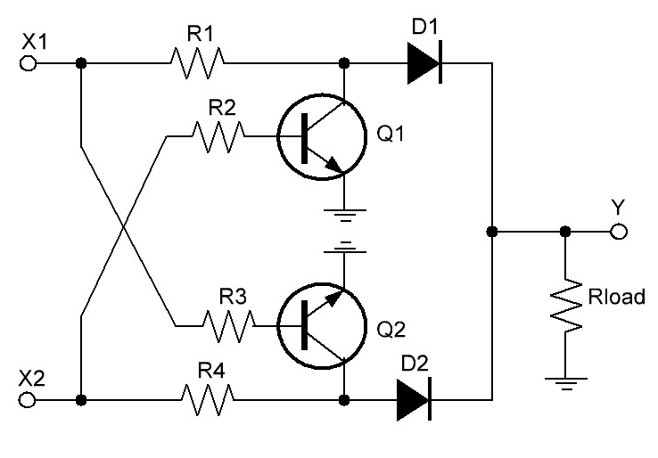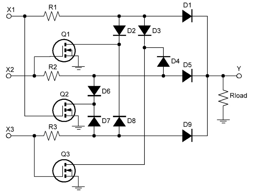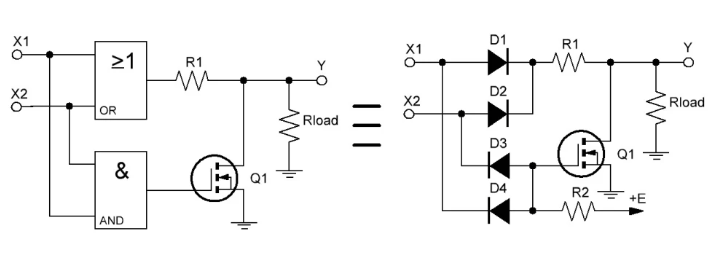 例如,二极管D1和D2以及电阻器R1和Rload(Rload>>R1)相当于逻辑元件2OR,如图1所示二极管D3和D4以及电阻器R2等效于2AND逻辑元件
