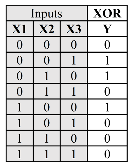 3XOR逻辑元件的类似物,如图5和图6,比以前的要复杂得多,但值得考虑的是,由于执行的复杂性增加或其他原因,没有产生微电路形式的此类元件表1(真值表)根据输入信号的集合来表征3XOR逻辑元件的输出信号电平。