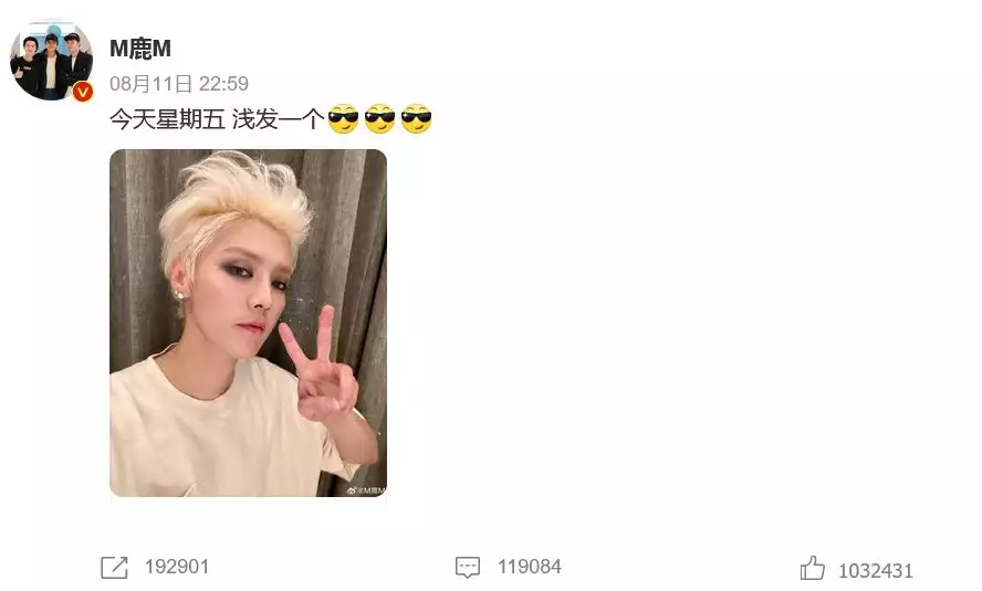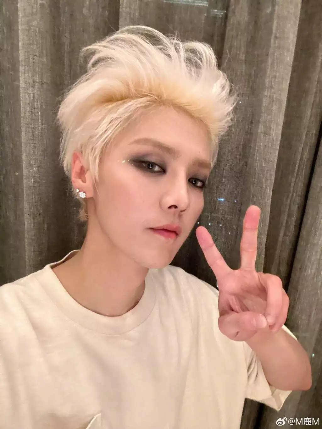 8月11日晚,鹿晗晒出自拍照,染金发妆容精致引发热议。