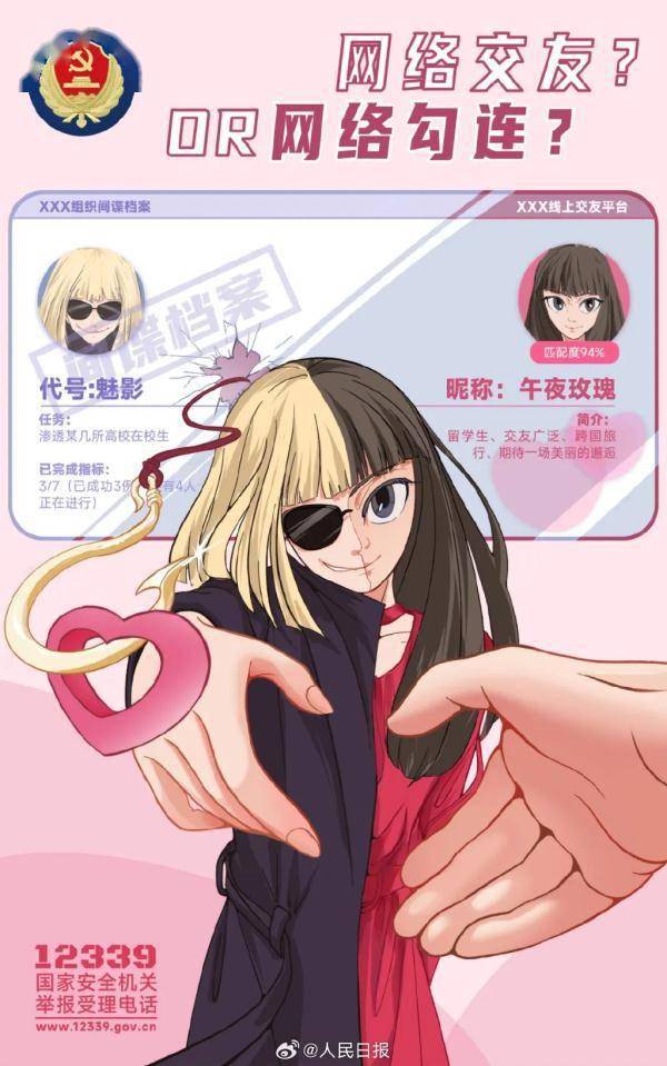 视频截图手段层出不穷发现间谍行为拨打12339报道称,不难发现,境外间谍机关的主要目标是党政机关、军队和军工企业、国防科研院所等部门的工作人员为了获取情报,境外间谍情报机关的手段层出不穷,咨询请教、感情拉拢、美色诱骗、金钱引诱,甚至控制胁迫都是他们常用的手法,而那些性格软弱、贪图奢靡享乐的人群往往经受不住诱惑,沦为被控制的对象。