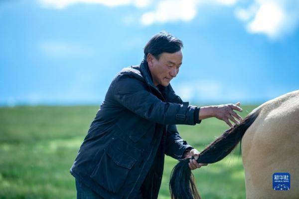 次扎达在给“隆达热巴”编马尾(8月9日摄)西藏自治区那曲市,47岁的次扎达和他的马儿“隆达热巴”正在草原上奔跑“隆达热巴”,大意是“像风一样飞驰的马”次扎达养马已有20余年,视马匹为“宝贝”他给马喂食有严格的配料比例,草和水都是牧场附近最新鲜的。