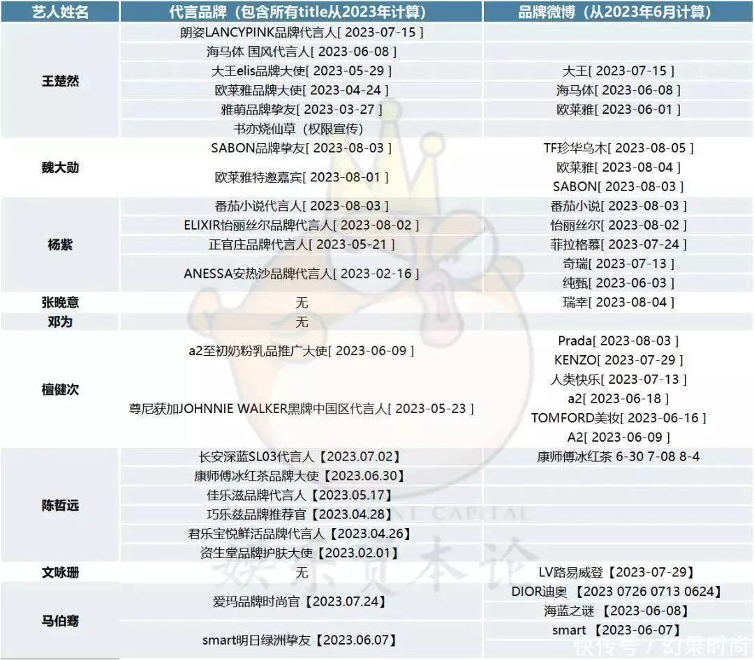 2023年内娱真有紫薇星?2023年暑期可以说是一场商务的“百团大战”不同于去年王鹤棣的“一家独大”,今年的品牌们在“新人”的流量池中轻拂衣袖、雨露均沾,几乎让所有暑期热播影视综都分到一杯羹《封神》男主角于适的微博,在六七月份出现浪琴、TASAKI两个品牌的合作博文,瑞幸和其拍摄的宣传照片则在7月31日公布。
