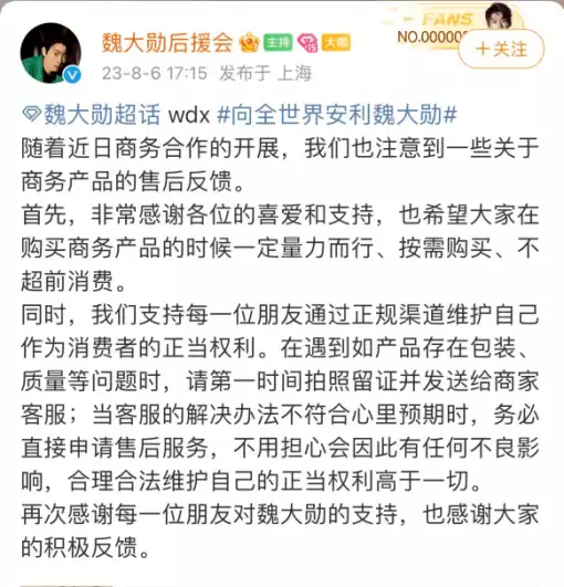 只是如果给的品不好,就意味着品牌其实不看重你,这很现实”但或许是因为今年暑期走红的的艺人还未形成成熟的粉圈,他们的粉丝大多带有路人属性,对于这些谙默的规则不慎了解某位购买魏大勋商务网友,就曾在小红书发文吐槽对货品日期不满意,并在评论区劝说后选择退换货。