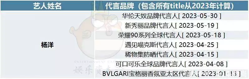 “他的定位还是在一线里,核心粉丝群体有一定氪金能力,而且目前很极端的负面也没有上升到他本人”与此同时,小娱观察到,在杨洋被调侃的前三个月,他前后官宣了可口可乐、荣耀90系列、华伦天奴、新秀丽等多个代言,目前其实是处于商务饱和的状态。