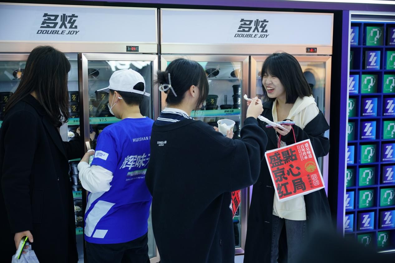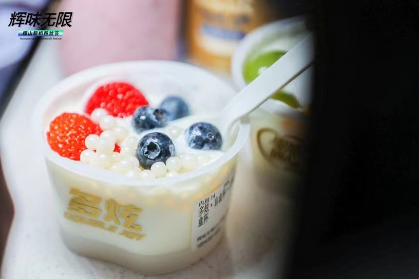 多炫以年轻人聚集地的校园为主场,不断提升品牌线下曝光但更为引人注目的所在是位于沈阳东中街步行街的辉味无限快闪店共创活动,以“酸奶+”为核心,玩出了营销新花样店内以多炫冰淇淋酸奶做基底,精选牛油果、蓝莓、草莓等新鲜食材,消费者可根据自己喜欢的口味随心选择相应食材尽情DIY,玩转多种奇妙搭配,与辉山一起调制专属于自己独特口味的定制化酸奶,好喝又好玩。