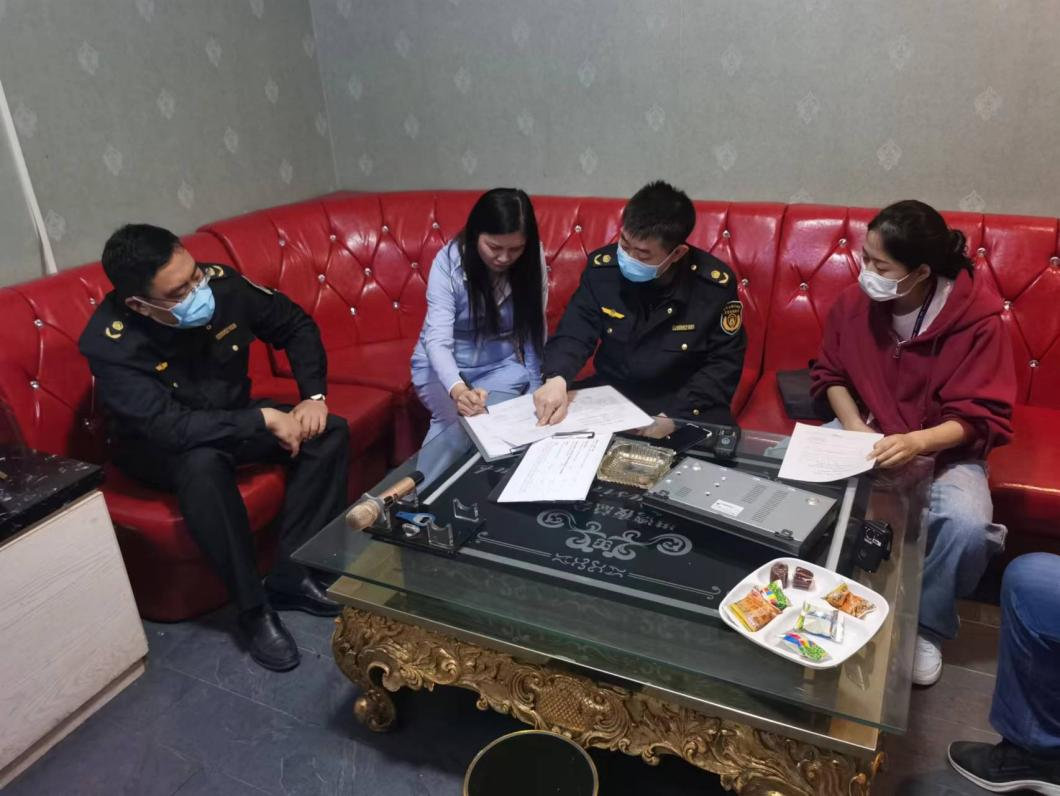 检查中,执法人员对3家无证“黑歌厅”采取“四不两直”突击式清查,向相关负责人宣传《娱乐场所管理条例》《娱乐场所管理办法》等相关法律法规、提示无证“黑歌厅”在生产经营活动中存在的问题隐患,告知负责人在未取得《娱乐经营许可证》前不得擅自从事歌舞娱乐场所经营活动。