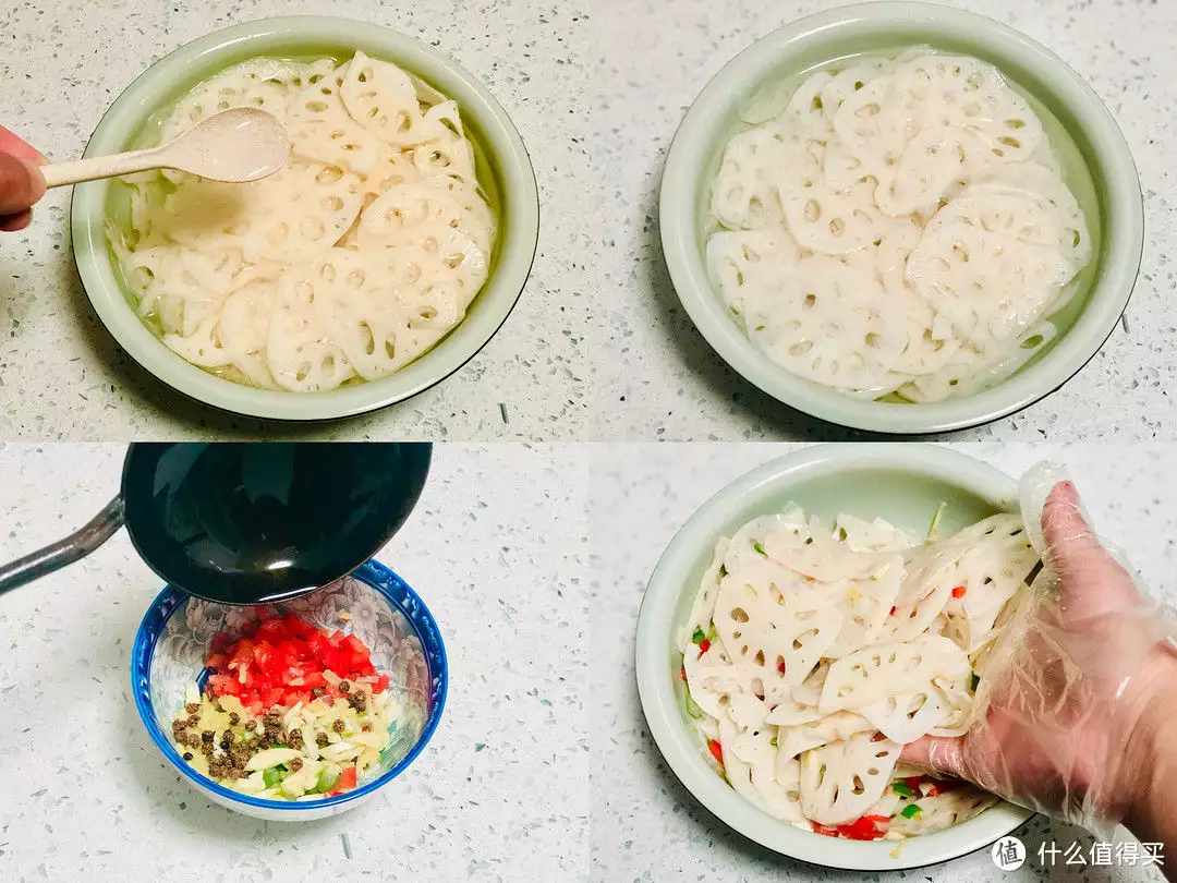 秋天是丰收的季节,莲藕也被赋予了象征希望和幸福的意义,有人们期待收获好运、顺利度过难关的寓意推荐食谱:【凉拌藕片】所需食材:莲藕、生姜、青红椒、花椒第一步:莲藕清洗干净,刮干净外皮,然后切成薄片,放在清水里边滴上几滴白醋,防止氧化发黑;