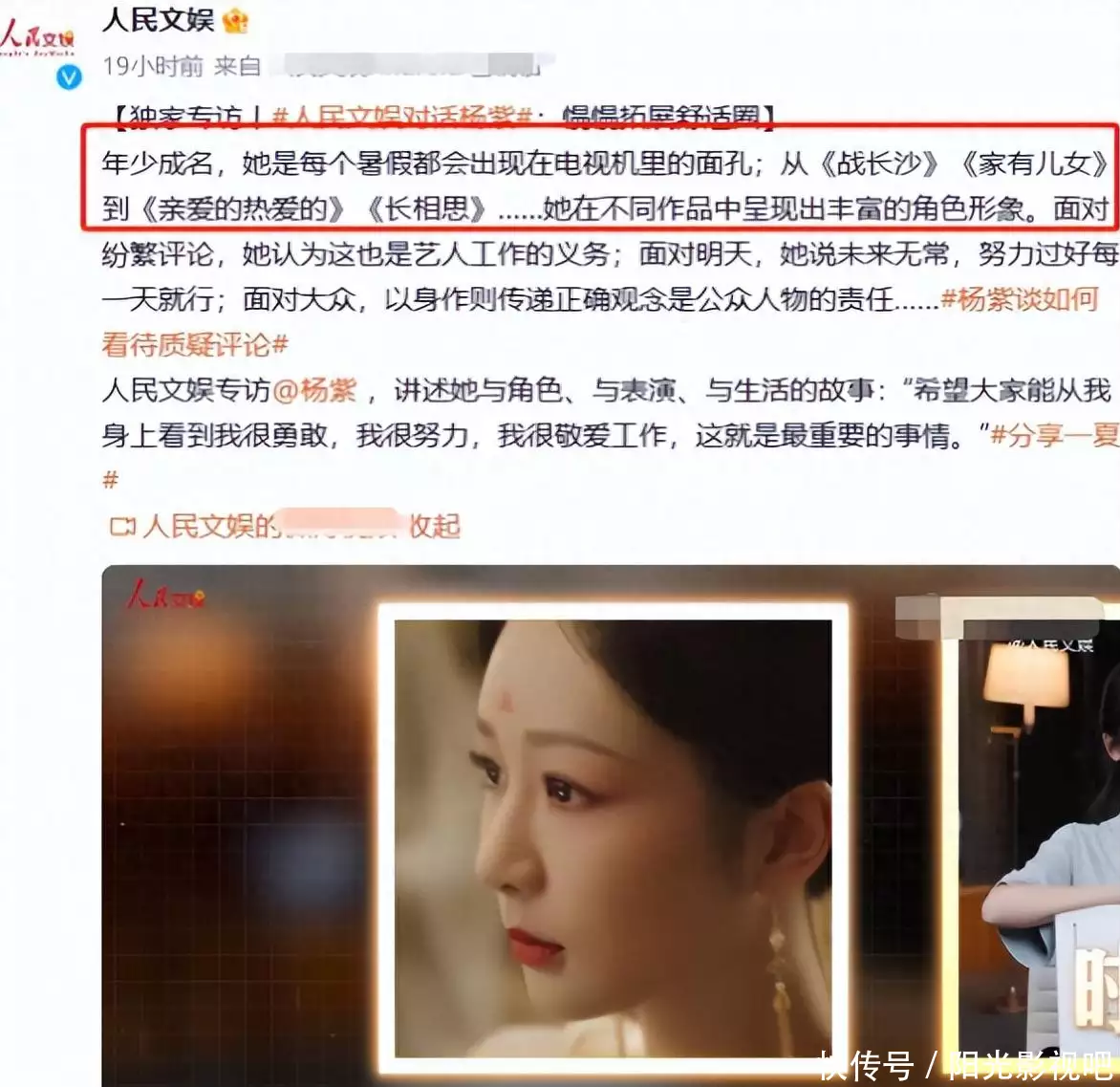人民文娱作为电视剧行业的明灯,一接收到来自观众们的信号,就果断出手,对杨紫进行了专访。在专访时,人民文娱言辞犀利,问题精妙,句句说到了观众心里,也让观众更加深入了解到,作为演员的杨紫老师。