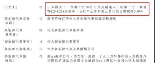 2021年底,许家印及其妻子丁玉梅共同出售中国恒大12亿股股票,作为一致行动人,许家印及丁玉梅持有中国恒大股份比例从76.69%下降至67.87%有业内人士称,法律上可能已经不是夫妻了,不然这么披露,律师那关过不了。