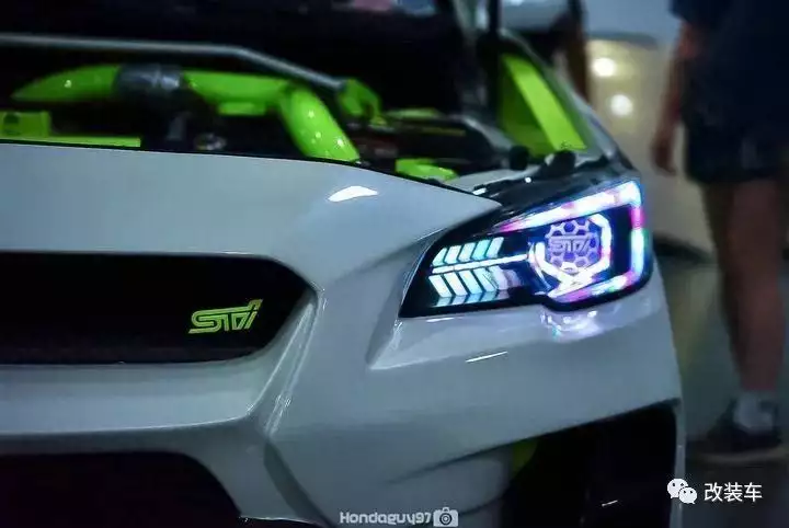 "性能有了,外观当然也得要跟得上才行!换上了Varis前杠、Varis后杠、Varis侧裙、Varis前唇、ARP前铲、Seibon碳纤维机盖、侧扰流板、后扰流板、ARP GTC-300碳纤维尾翼、定制大灯、Subispeed 尾灯、特别版荧光绿后刹车灯