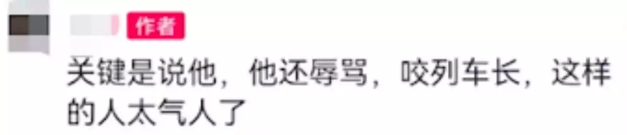 发布这条视频的网友在评论中写道:“他还辱骂,咬列车长,这样的人太气人了。”其补充道:“谁管他,他几句打谁骂谁,才叫的乘务长,这是他把人家乘务长推倒后,乘务长起来才这样说的他,这个人太过分了。”
