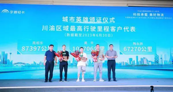 【宇通轻卡为“城市英雄”举行颁证仪式】川渝地区最高行驶里程用户代表陶永刚表示:“从拿到宇通轻卡到现在的7个月时间,我已经运营了7万多公里因为宇通轻卡的续航更长、品质更好,所以我直接用宇通轻卡进行中长途运输,基本都是从成都到贵阳、重庆等地区。