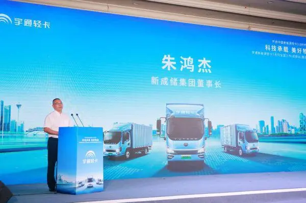 【新成储集团董事长朱鸿杰先生致辞】新成储集团董事长朱鸿杰表示:“宇通集团作为国内最早布局新能源的商用车企业之一,其自身具备深厚的技术积淀,而宇通轻卡站在巨人的肩膀上起步,产品实力更值得信赖对于新成储而言,比较看重的是运输车辆的出勤率、续航、以及后续的服务保障,宇通轻卡以过硬的产品实力全面满足需求。